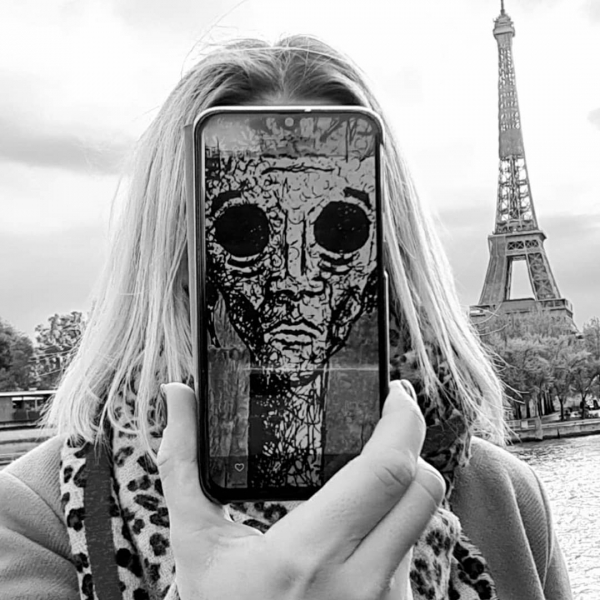 وجدارية "وجوه الحرب" رسمها الفنان مراد سبيع عام 2017 بيّن من خلالها كيف تستهلك الحرب الناس وتغير ملامحهم وحياتهم.