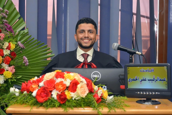 نال الباحث اليمني عبدالرقيب علي الخمري، يوم الإثنين، درجة دكتوراة الفلسفة في العلوم "كيمياء" تخصص الكيمياء الفيزيائية، مجال علم التآكل من كلية العلوم جامعة المنصورة، بجمهورية مصر العربية.