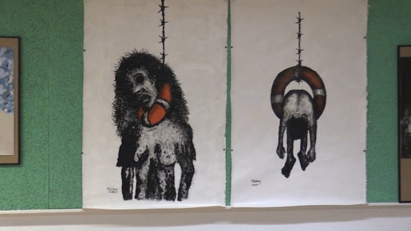 وأشار الأسودي الى أن "جنيف سعيدة بهذا المعرض وحزينة في ذات الوقت للتعبيرات القاسية التي عبرت عنها لوحات الفنانين التشكيليين".