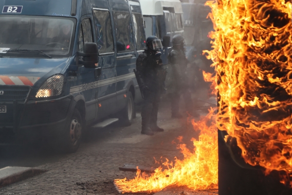 وقال وزير الداخلية كريستوف كاستانير “خبراء في النهب واشاعة الفوضى تسللوا وهم ملثمون ألى التظاهرة”.