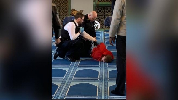 وأظهرت صور نشرت على موقع تويتر أفراد الشرطة وهم يقيدون حركة رجل في ساحة الصلاة بالمسجد قرب متنزه ريجنتس قبل اقتياده بعيدا.
