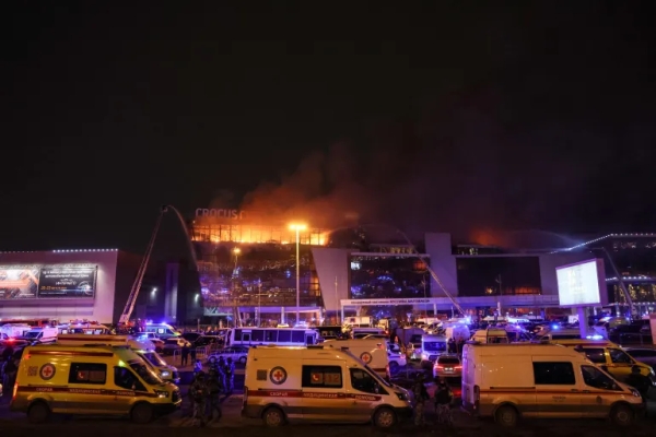 وقالت السلطات الروسية إن مسلحين فتحوا النار خلال حفل لموسيقى الروك في قاعة "كروكس سيتي" للحفلات الموسيقية قرب موسكو، فقتلوا ما لا يقل عن 62 شخصا وأصابوا 105 آخرين وأشعلوا حريقا في القاعة.