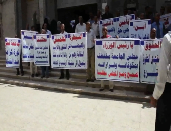 وطالب المحتجون بتشكيل لجنة تحقيق في فساد إدارة الجامعة، ومحاسبة الفاسدين، وتصحيح وضع مجلس النقابة بمكوناته وقراراته.