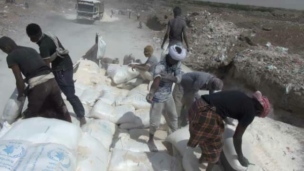 وأكدت مصادر محلية، قيام مليشيا الحوثي بإتلاف 71 طن من مادة" الدقيق" التابعة لبرنامج الغذاء العالمي، بعد تعرضها للتلف بسبب سوء التخزين وتعرضها للحرارة والرطوبة العالية.