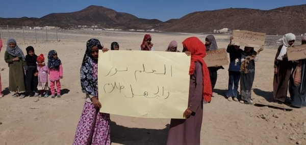 والأحد، نُفذت وقفة احتجاجية في مخيم "السويداء" ـ أحد أكبر مخيمات النزوح بمحافظة مأرب ـ، للمطالبة بتوفير مدرسة لطلاب وطالبات المخيم.
