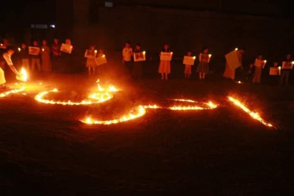 نفذ العشرات من أطفال محافظة مأرب، مساء الأربعاء، وقفة تضامنية بالشموع أمام منزل الطفلة "ليان" التي تفحمت جثتها بصاروخ باليستي، أطلقته مليشيا الحوثي على حي سكني بالمدينة، وراح ضحيته 21 مدنياً بينهم السبت الماضي.