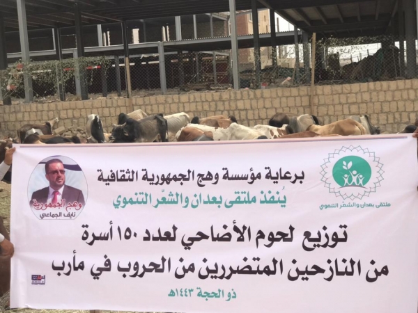 اختتم ملتقى أبناء بعدان والشعر أمس الثلاثاء مشروع توزيع أضحية العيد والذي استفاد منه نحو 150 أسرة نازحة في محافظة مأرب، شرق اليمن.