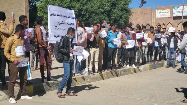 نفذ طلاب جامعة تعز فرع التربة، يوم الإثنين، وقفة احتجاجية؛ للمطالبة بإصلاح الوضع التعليمي، داخل الجامعة، محذرين من مغبة التساهل من مطالبهم، مهددين بالتصعيد في حال تجاهل تلك المطالب المتعلقة بانقاذ الوضع داخل الجامعة.
