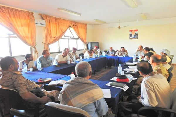 وناقش الاجتماع الذي حضره قيادات الألوية والوحدات العسكرية والأمنية بالمحافظة آلية صرف الراتب والمكافأة للشهداء المقدمة من الملك سلمان وكذا تحديد موعد الصرف لراتب شهر مارس.