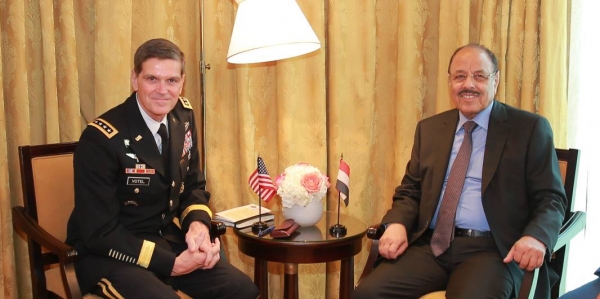 من جانبه عبر قائد القيادة المركزية الأمريكية باللقاء الذي يأتي في إطار تدارس المشاكل الأمنية والعسكرية، وجدد تأكيد بلاده رفضها لأي تدخل إيراني ودعمها للسلطة الشرعية ولاستعادة الدولة وأمن وسلامة أبناء الشعب اليمني.