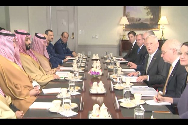 وذكر الوزير الأمريكي، خلال استقباله لولي العهد السعودي الأمير محمد بن سلمان اليوم الخميس 22 مارس في "البنتاغون"، أنه سننهي الحرب في اليمن بشروط إيجابية للشعب اليمني ولأمن المنطقة أيضا".