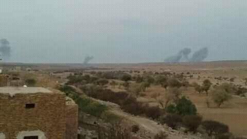 وأشار إلى الطائرات قصفت مواقع جبلية تقع بين مديريتي عمد ورخية، يتحصن فيها مسلحين من تنظيم القاعدة.