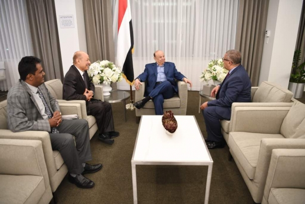 استقبل الرئيس عبدربه منصور هادي رئيس الجمهورية، اليوم الأحد، بمقر إقامته بالولايات المتحدة الأمريكية الوفد الرسمي المرافق له للمشاركة في أعمال الدوره الـ73 للجمعية العامة للأمم المتحدة بنيويورك، مستشاريه الدكتور رشاد العليمي ونصر طه مصطفى.