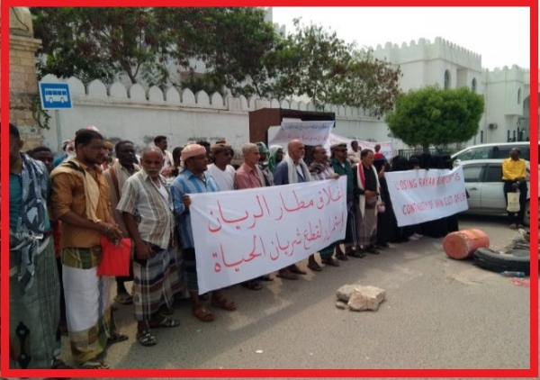 واليوم الخميس نظم عشرات من أبناء المكلا وقفة احتجاجية للمطالبة بفتح مطار الريان الدولي، وتجمع المحتجون أمام ديوان محافظ حضرموت بمدينة المكلا، رفع المحتجون لافتات باللغتين العربية والإنجليزية، كتب على بعضها "إغلاق مطار الريان، استمرار لقطع شريان الحياة"، و"إلى من يهمه الأمر: افتحوا مطار الريان".