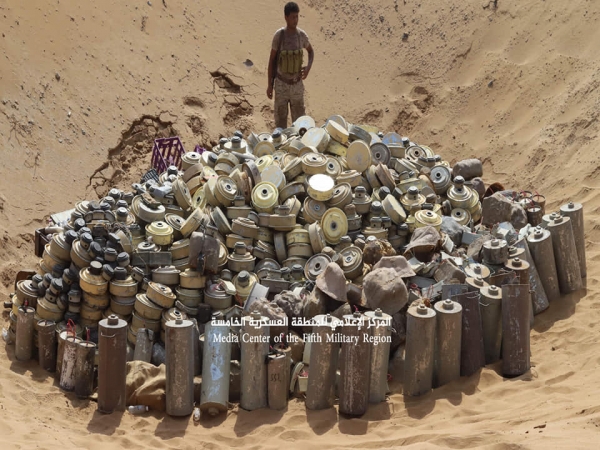 وقال العميد ياسر الروحاني رئيس شعبة الهندسة العسكرية بالمنطقة العسكرية الخامسة، أن الفرق الهندسية أتلفت نحو 5000 عبوة ولغم متنوع المهام والأحجام والصناعات، بعد أن نزعتها خلال الأسابيع الماضية، كانت زرعتها مليشيا الحوثي الانقلابية في مناطق متفرقة من مدينة حرض ومزارع النسيم و الخضراء والقرى المجاورة لها بمحافظة حجة.