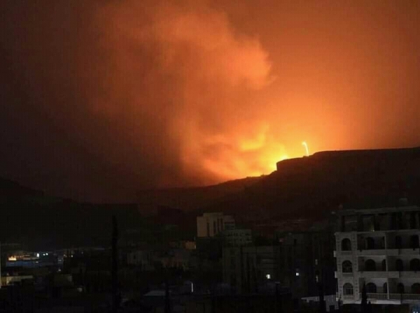 وقالت مصادر "ان مقاتلات التحالف شنت غارات على معسكر الحفا وعدد من المديريات في ضواحي العاصمة صنعاء".