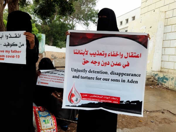 وفي الوقفة الاحتجاجية جددت أمهات المختطفين والمخفيين قسراً، مطالبهن بسرعة الإفراج عن أبنائهن في السجون السرية التابعة للتشكيلات العسكرية والأمنية بعدن.