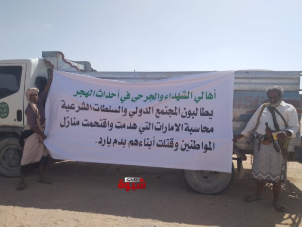 يشار إلى أن أبناء قبائل السادة ومن يؤيدهم من أبناء شبوة أعلنوا عزمهم الاعتصام السلمي بالقرب من معسكر العلم الذي يتواجد فيه الضباط الإماراتيين للمطالبة بحقوقهم، على خلفية اشتباكات بين القبائل وقوات النخبة الشبوانية المدعومة إماراتياً في يوليو من العام الماضي.