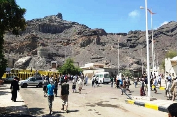 وأوضحوا أن المقتحمين من المجندين التابعين للانتقالي والمطالبين بصرف مرتباتهم المتوقفة .