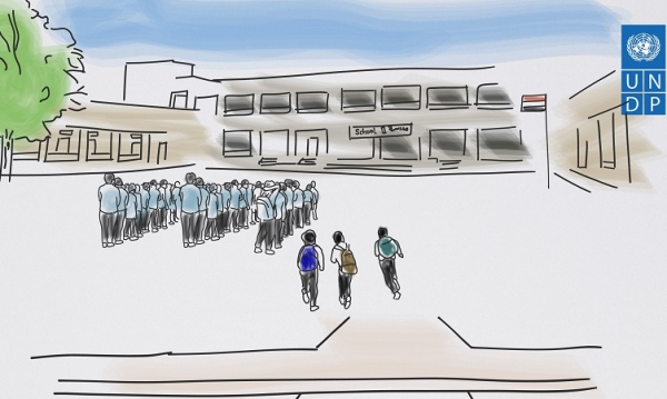 وحسب البرنامج الإنمائي فقد تم تحديد وتطهير خمسة ألغام مضادة للدبابات وخمسة أخرى مضادة للأفراد وثلاثة قذائف هاون، داخل وحول مدرسة اليرموك، كما تم تطهير أكثر من 7,000 متر مربع من الأراضي التي وجدوا فيها أربعة ألغام مضادة للدبابات، وعبوات ناسفة مرتجلة – مصنعة محلياً (IEDs) و50 لغماً مضاداً للأفراد، في الطريق المؤدية إلى مدرسة معاذ بن جبل.