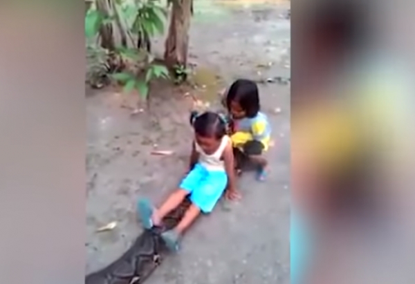 ظهر تسجيل مصور تداولته العديد من مواقع التواصل الاجتماعي، طفلتين صغيرتين وهما تمرحان على ظهر واحد من أطول وأضخم الثعابين في العالم ويصل طوله 7 أمتار.