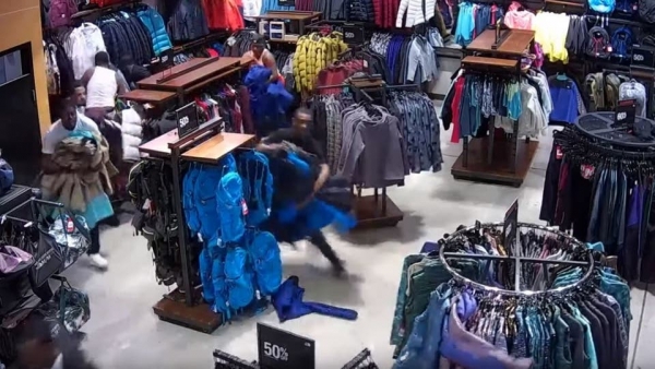 وفي الفيديو، الذي انتشر على "يوتيوب YouTube" تظهر عصابة مكونة من 10 أشخاص، تقتحم متجر "نورث فيس" في ويسكونسن، وتنفذ عملية السرقة الجماعية لبعض المحتويات في خلال 30 ثانية فقط.