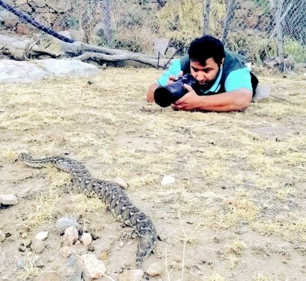 وتابع آل مداوي: "عندما لحقت بي حينها استعنت بأخي وأتى لمساعدتي في تشتيت انتباهها لتصويرها وقمت بأخذ عدة لقطات لها، ولكن هجومها لم يتوقف وحاولت الوصول لي أكثر من مرة في الوقت الذي كنت أبحث فيه عن هدنة معها لتصويرها، وحاولت أن تلدغني فاستعنت بعصا كبيرة لإخافتها وتمكنت من صدها واسترجاع الكاميرا بعد أن غادرت الكوبرا الموقع وتسلقت شجيرة".