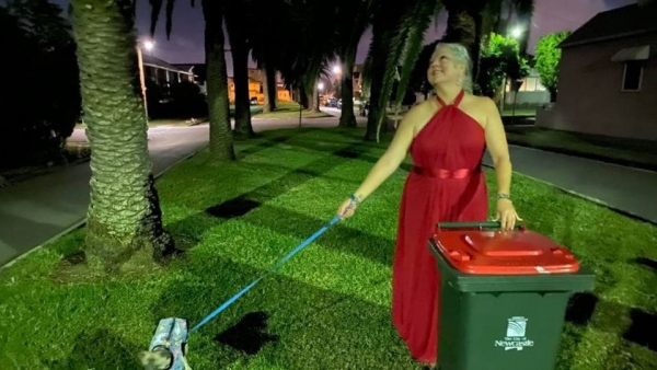 وبدأت الحملة بمثابة مزحة عندما تحدت دانييل أسكيو من ولاية كوينزلاند بأستراليا صديقتها إن كانت تجرؤ إخراج صناديق القمامة أثناء ارتدائها ملابس احتفالية. وشاركت دانييل صورة لنفسها وهي ترتدي فستانًا أزرق اللون ولامعًا لتلقي القمامة خارج منزلها.