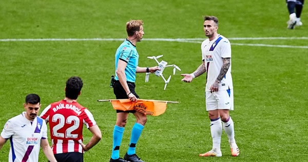توقفت مباراة أتلتيك بيلباو، على أرضه، ضد إيبار في الدوري الإسباني، السبت، عندما سقطت طائرة مسيرة على أرض الملعب.