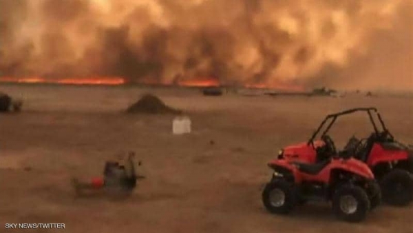 يظهر الفيديو، الذي التقطته إميلي بريستون، الحريق مستعرا بالقرب من ممتلكاتها، بحسب ما ذكرت "سكاي نيوز" البريطانية.