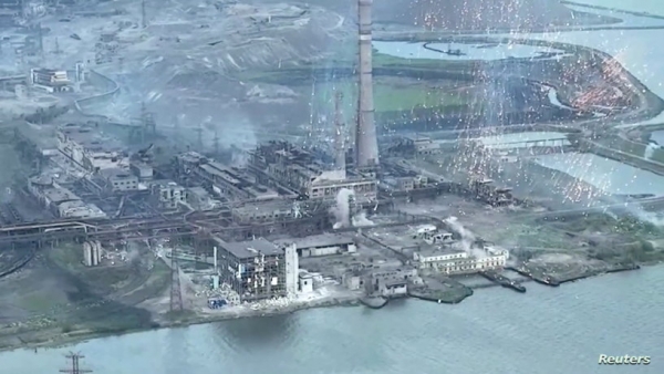 أظهر تسجيل مصور نشره أحد قادة الانفصاليين الموالين لروسيا، الأحد، ذخائر ينتج عن احتراقها وهج أبيض وهي تنهمر على مصنع آزوفستال للصلب، في مدينة ماريوبول الساحلية الأوكرانية.