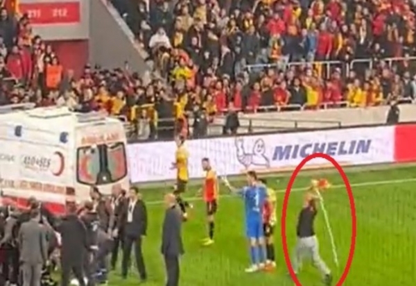 مشاهد صادمة شهدتها مباراة لكرة القدم في تركيا، حيث اعتدى مشجع على حارس مرمى، مستخدما عصا الراية الركنية، مما أدى إلى إصابته في الرأس.