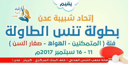 دشن اتحاد شبيبة عدن، اليوم الاثنين، بطولة تنس الطاولة للفئات الثلاث (متمكنين، هواة، وصغار السن)، في مقر نادي التنس العدني العريق بمديرية كريتر.