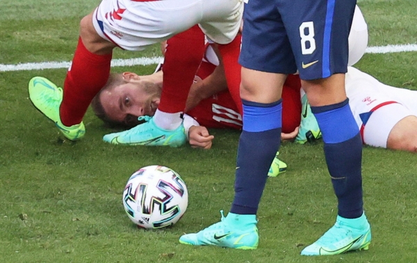وسقط إريكسن مغشيا عليه في 12 يونيو/حزيران الماضي خلال مباراة بلاده وفنلندا في أمم أوروبا (يورو 2020) بعد تعرضه لأزمة قلبية استدعت تدخلا عاجلا من الفريق الطبي ونقله على جناح السرعة للمستشفى.