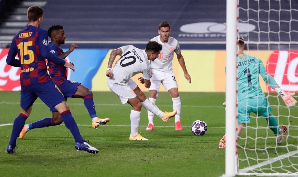 برشلونة يفشل بتخطي أحد الأدوار الإقصائية بالرغم من الفوز خارج أرضه ذهاباً لأول مرة في تاريخ مسابقة دوري أبطال أوروبا منذ انطلاقها عام 1955.